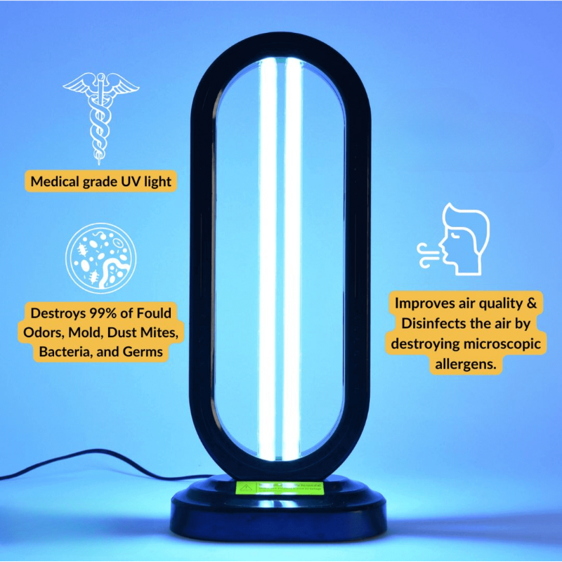 Improves air quality & Disinfects the air by destroying microscopic allergens.